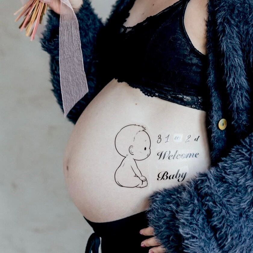 【送料無料】 シンプル赤ちゃん3 マタニティフォト マタニティペイントシール マタニティタトゥーシール マタニティフォトシール ブランド おしゃれ シンプル モノトーン マタニティマーク 母子手帳ケース 母子手帳カバー 月齢カード マンスリーカード