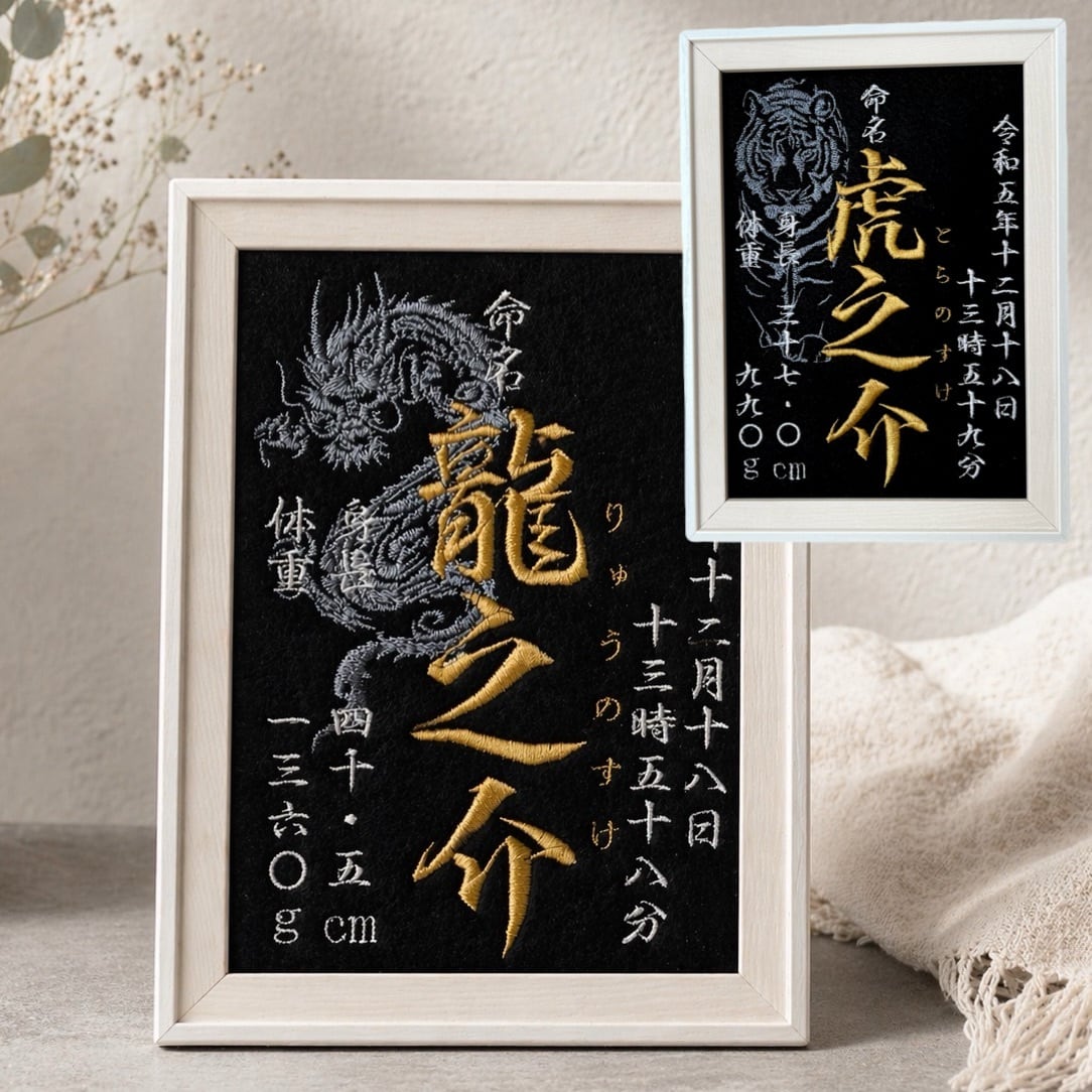 龍や虎をモチーフにした、力強くかっこいい印象の命名書です。