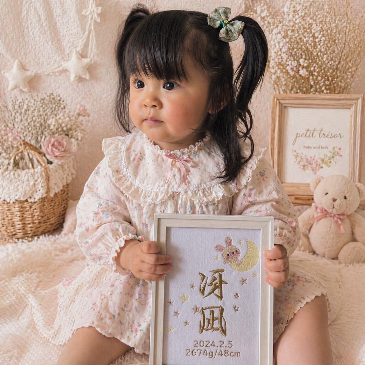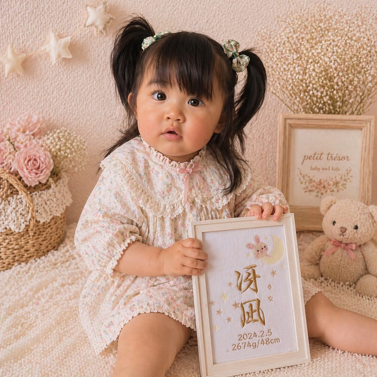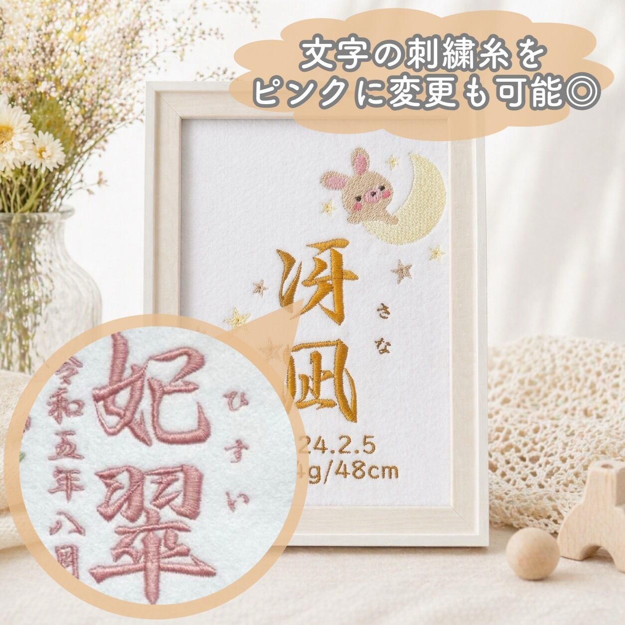 うさぎ×月×星 出産祝いにも 刺繍命名書