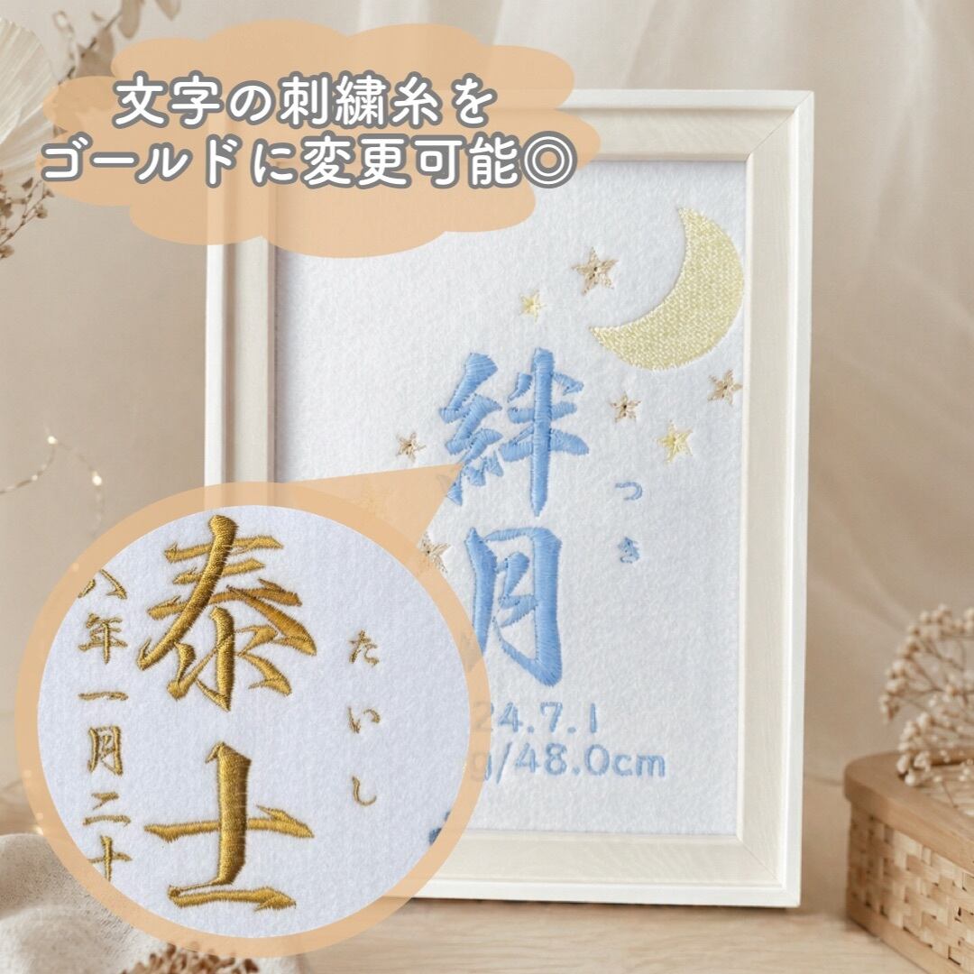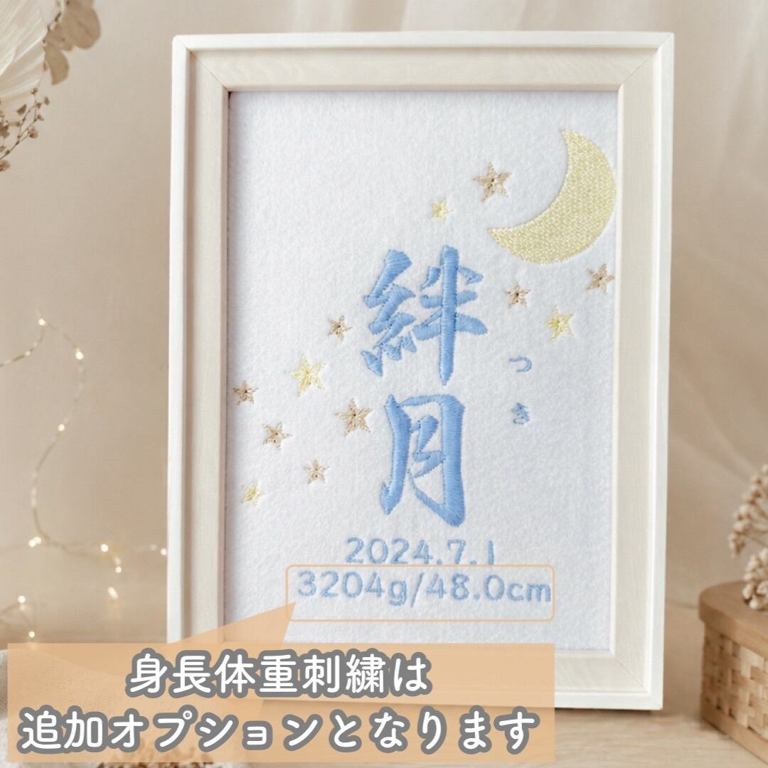 ブルー 月×星 出産祝いにも 刺繍命名書